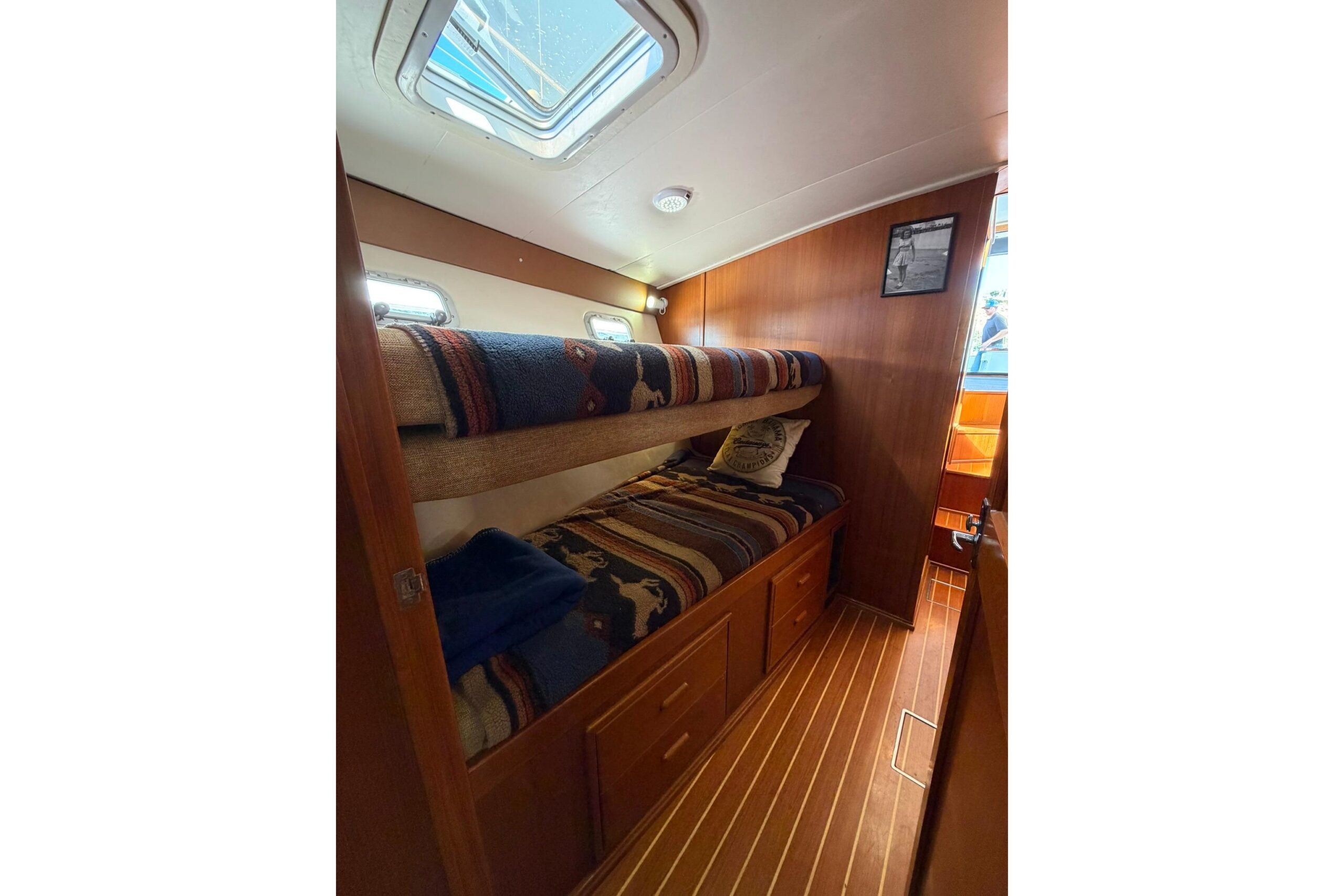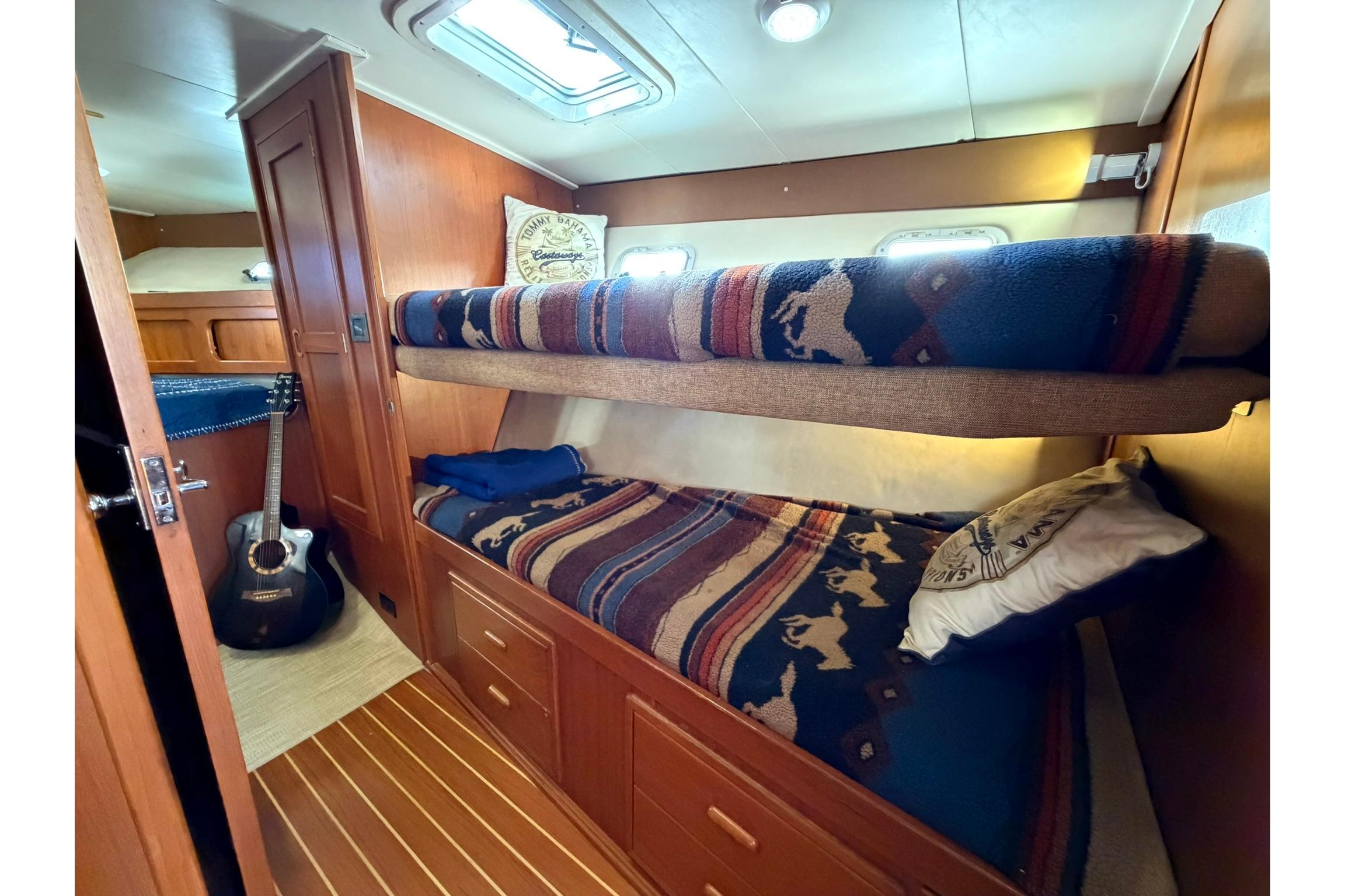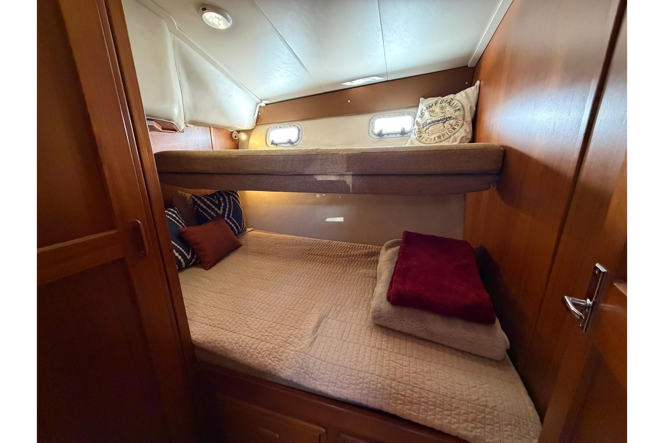 Another Guest sleeping area in to stbd with over/under bunk beds that convert to a sitting area/settee