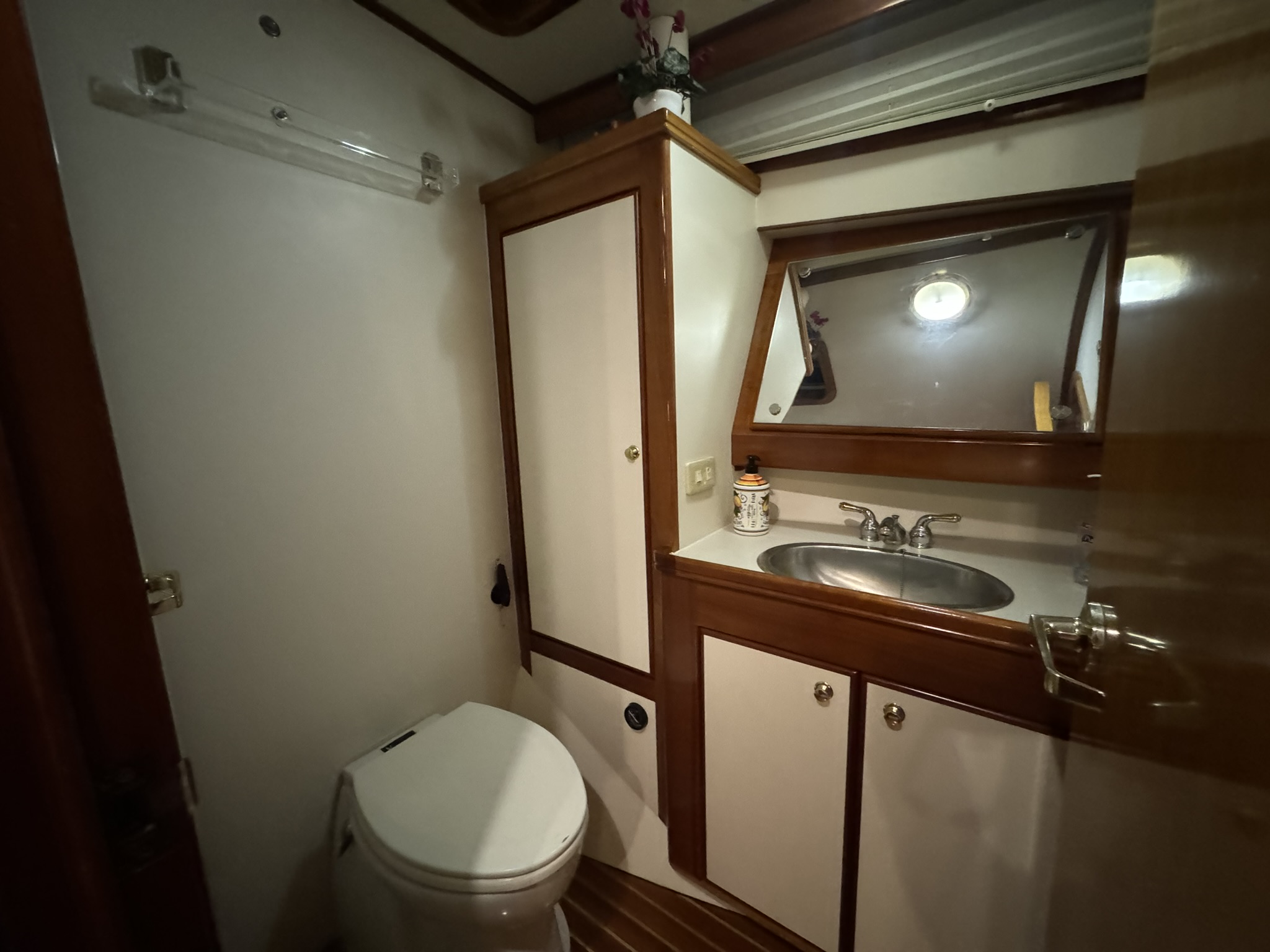 - Head is mid-ship w/vanity, electric head & walk-in stall shower